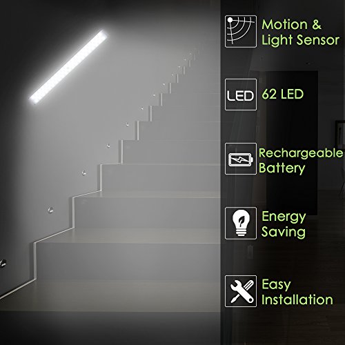 LED Closet Light , Newest Version Rechargeable 62-LED Motion Sensor Closet Light Wireless Under Cabinet Light for Closet , Cabinet , Wardrobe , 2 Sensor Mode ( Motion Sensor , Motion & Light Sensor )