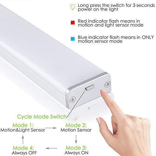 - 【4 MODES & RECHARGEABLE】: Motion & Light Sensor Mode , Motion Sensor Mode , Always On and Off - 4 Working Modes Motion Sensor Closet Light meet All your Different Needs. Built-in 1600mAh Rechargeable Lithium Battery , it can last for over 3 Hours (Always On Mode) and 1-2 months (Sensor Mode--Activate 10 times a Day) in a fully charged. NEVER Replace AAA Batteries Frequently. Energy Save & Save More Money!
