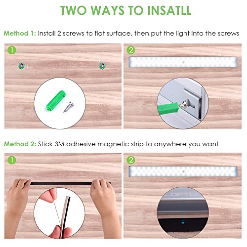 - 【EASY TO INSTALL】Our Motion Activated Night Light Equip 3M Adhesive Magnetic Strip and Screws , Simple to Install by 2 Ways and Remove . Allows you to Change the Location of it or switch between Different Locations. Ideal for your Home’s Bedroom , Closet , Cabinet , Wardrobe , Workshop , Basement , Garage , Stair , Garage etc.
