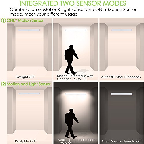 - 【UPGRADED 2 SENSOR MODES】Compared to traditional Closet Light , LOFTER LED Closet Light has 2 Sensor Modes , You can Achieve DISABLE the Light Sensor and LEAVE only Motion Sensor in the Motion Sensor Mode. Light will Turn on Automatically when you get within 10 Feet and Turn off 20 Seconds after you Walk out of its Sensing Range ; Under Motion & Light Sensor Mode , it only works both the Ambience is dark enough and the Motion is Detected. "