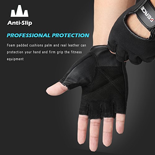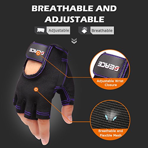 Product Description: -Four Color:Black, Blue, Purple, Hot Pink -Extra Durable: Double layered thumb and double stitched thumb and double stitched palm -Comfortable: Design:Freely adjustable velcron closure. Breathable and flexible mesh. Anti-slip foam cushions and leather palm Multi-purpose: Suit for Work Out, Exercise, Training, Fitness, Bodybuilding, Cycling , Weight Lifting, Power lifting
