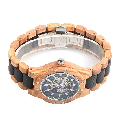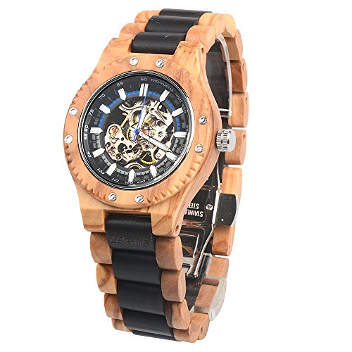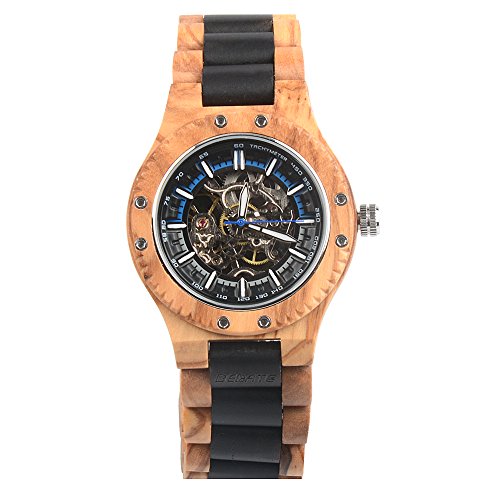-. Feature : Unique Wood Grain--The wood watches are handcrafted with 100% natural wood.Handmade wristwatch retain wood scent and grain.Every piece of wood is not the same. / Strong & Durable--A solid wood casing & sapphire glass overlay give these designer men's wooden watches the unique ability to redly withstand day-to-day wear & tear. / Cool gear face--Featuring a transparent body that showcases the mechanical gears inside as they work & fitted with an adjustable all wood wristband, our wooden watches for men combine practicality with modern style. / How To Use--Step 1:Put out crown,turn crown to adjust time(clock wisely).Step 2:Push back crown, turn crown to wind watch (clock wisely).It's about 10 circle winding.Stop winding when you feel a little resistance.Over wind may damage the watch.Step 3:Shake the watch for 5 seconds / Water resistant--The nature watch made from wood is designed to be 3ATM water resistant.No matter if you want to wash your hand,get a shower or simply wash your dishes,the watch will never stop working.