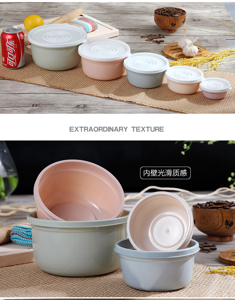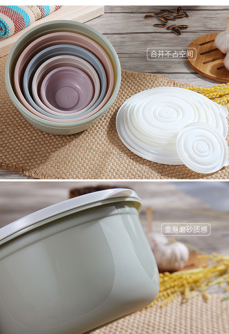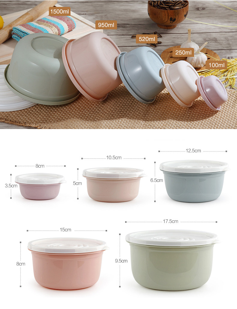 保鲜盒塑料5件套装冰箱微波炉冷冻收纳盒密封盒圆形保鲜碗便当盒