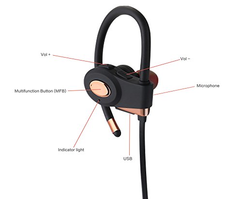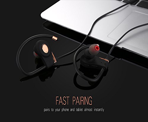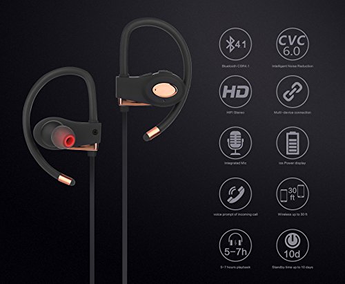 MEZVOK Bluetooth Headphones, Wireless Headset, In-ear Earbuds With Over-ear Hooks, Noise Cancelling, V4.1+ CSR, With Build-in Mic, Secure Fit Bluetooth Headset For Running, Workout and Gym, Rose Gold