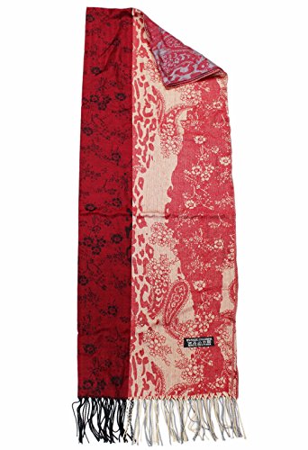 (Pashmina Shawl)/Accessories/Scarves/DIRECT FROM USA/Red Pashmina Shawl w/Black and Gold Swirling Floral Patterns