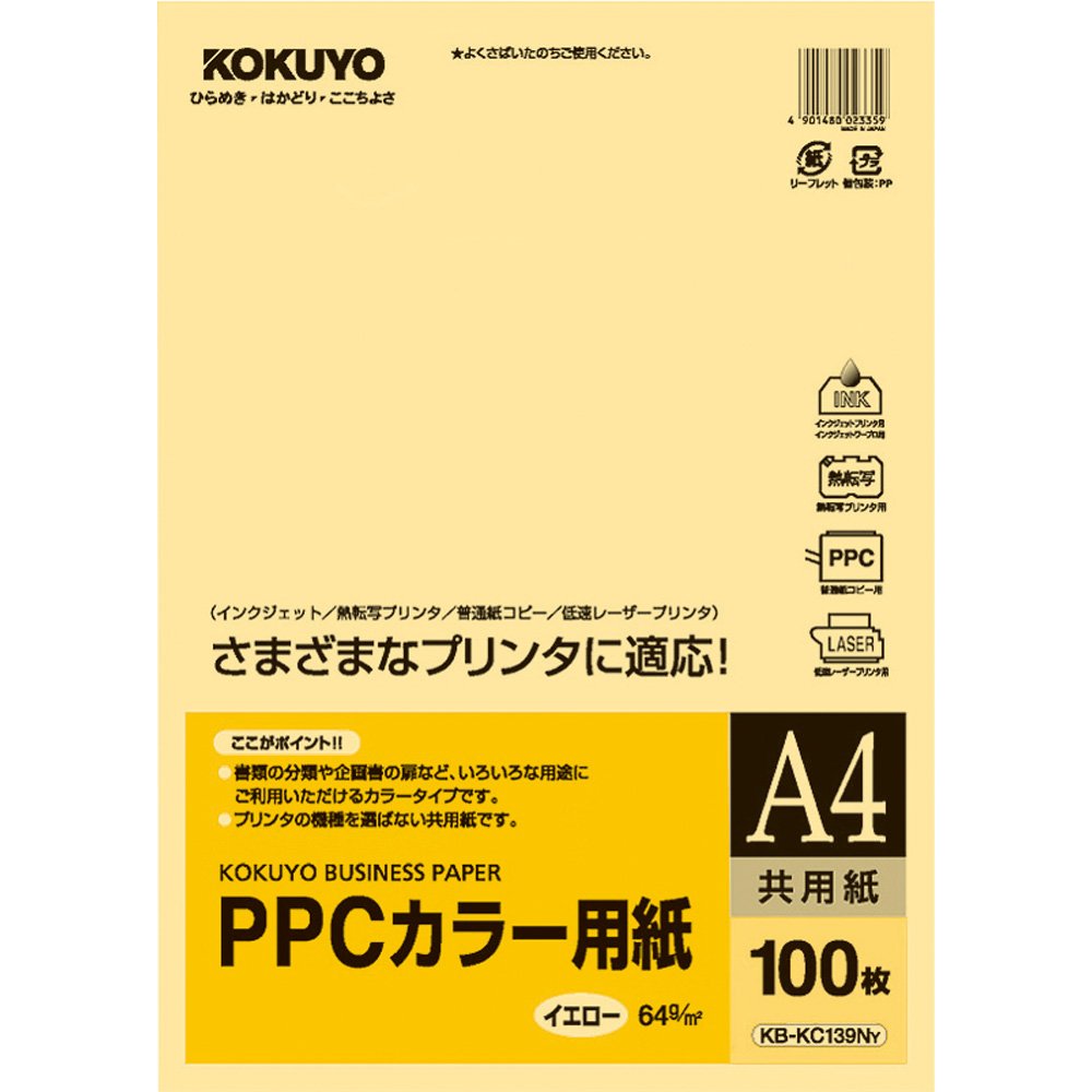 A4 100 sheets KB-KC139NY Kokuyo PPC color paper both paper recycled paper yellow (japan import)