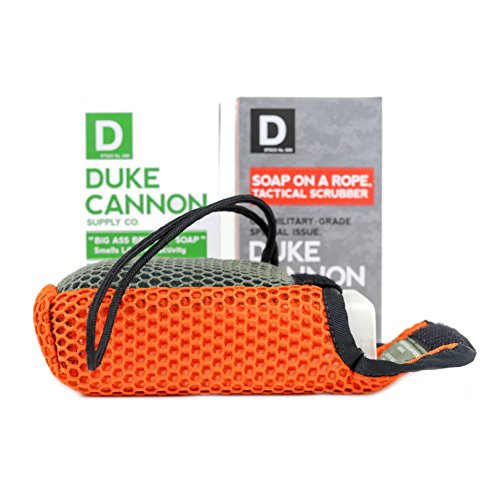 Duke Cannon never drops his soap. The Tactical Soap on a Rope Pouch is an ideal companion to Duke Cannon Soaps. This U.S. Military-grade tactical soap pouch should be standard issue for every shower. To maximize hygiene in tactical situations, this equipment is engineered with a course mesh to scrub your hands and feet, and a softer mesh for less rough areas. Fully machine washable, fast drying, and the 550-mil-spec paracord wraps around your wrist and keeps your large soap off the ground. Included with the Tactical Soap on a Rope Pouch is Duke Cannon's "Smells Like Accomplishment" Big Ass Brick of Soap. With a scent of Bergamot and Pepper, "Smells Like Accomplishment" is perfect for everyday masculinity and a great gift for any man in your life. Not for clowns - at 10 ounces our soap bar is 3x bigger than feminine soaps. * A portion of proceeds supports Veteran's causes. * MADE IN THE U.S.AFeature