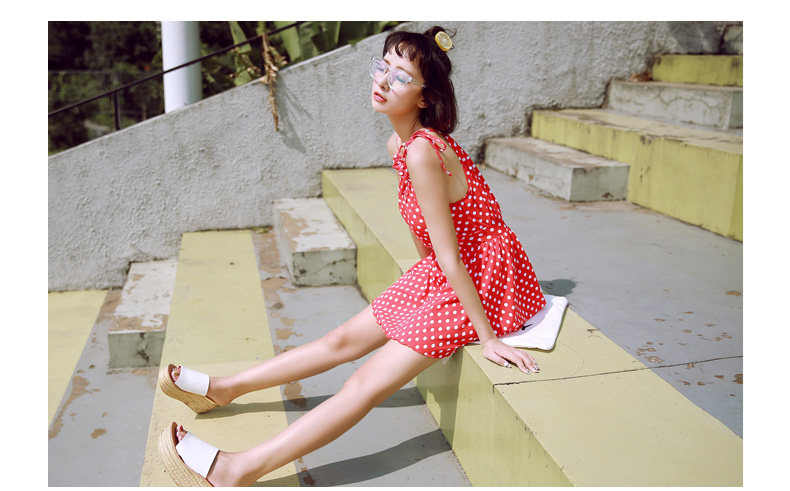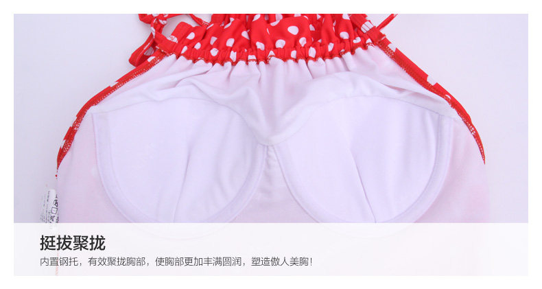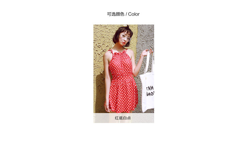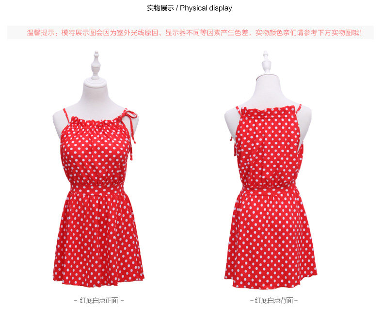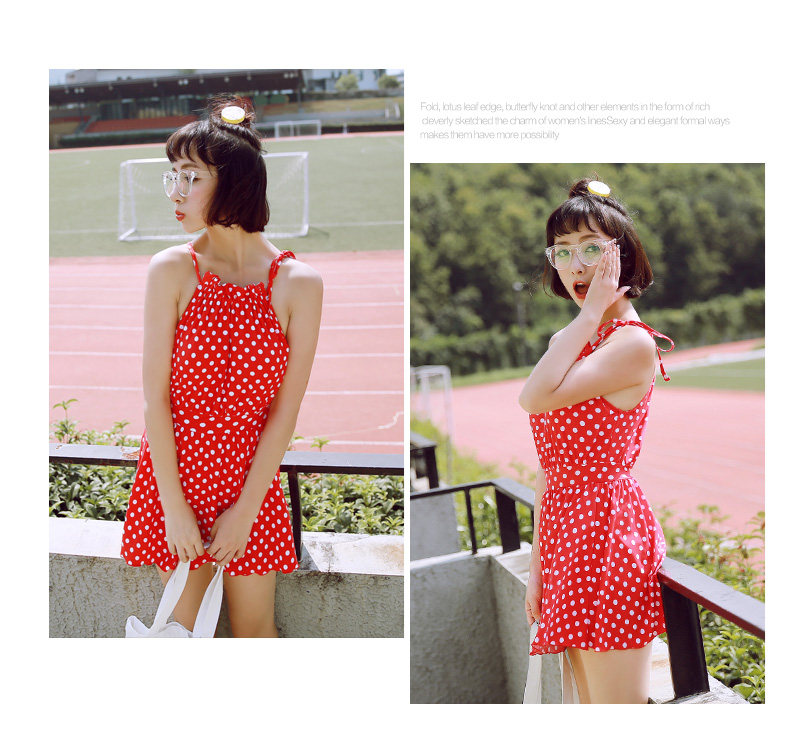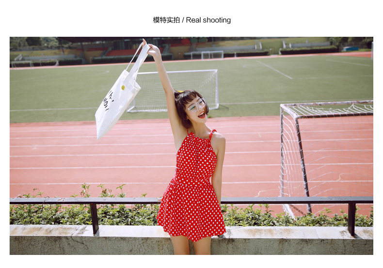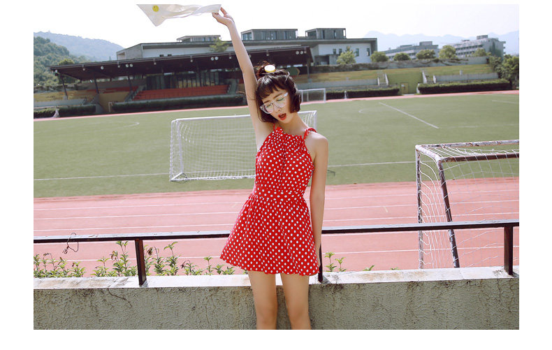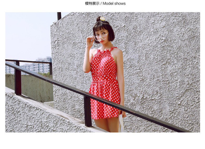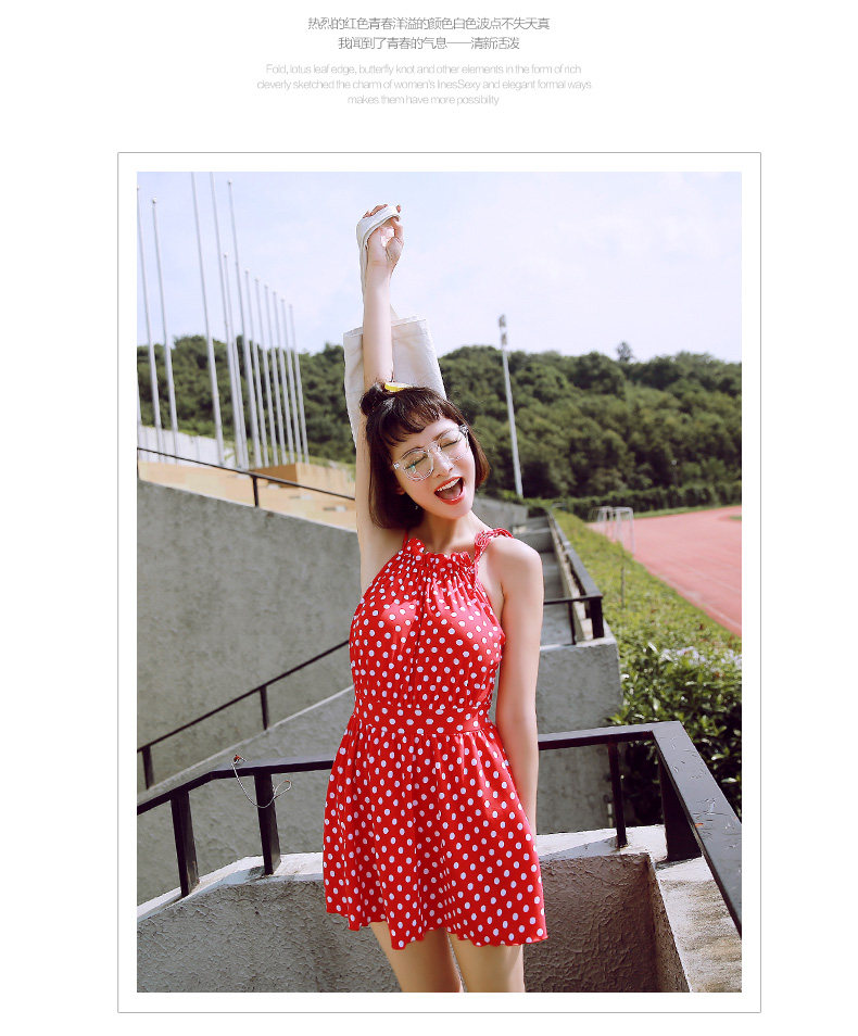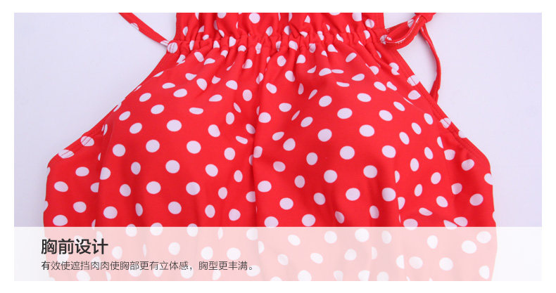 红色波点连体裙式温泉泳衣女小胸显瘦遮肚保守游泳衣