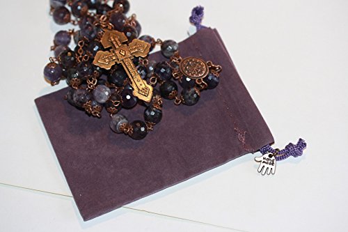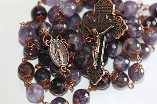 Large Amethyst and Antique Copper 10mm 5 Decade Stone Bead Rosary With Pardon Crucifix Made in Oklahoma