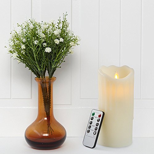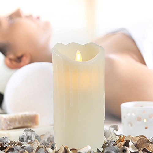 NO HASSLE & NO MESS - Absolutely no mess; no dripping wax, no smoke, no matches. Simply switch on the candle by clicking the remote. Click it off when no longer needed. Features a multi-function remote control (On/Off, Timer, Dimmer). Switch it on/off and set other options from the comfort of your bed, sofa, etc.