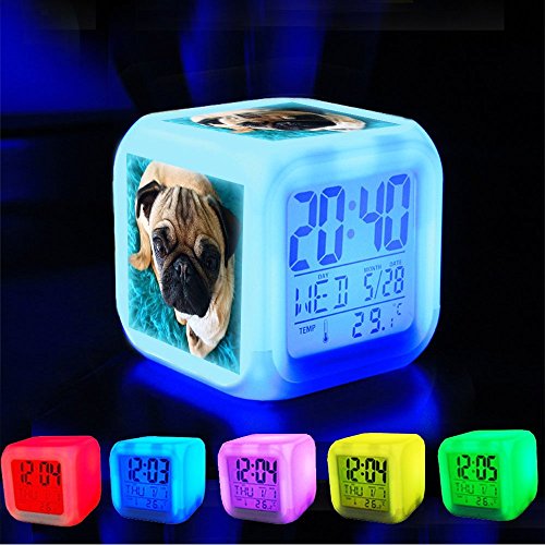 -. Title : Alarm Clock 7 LED Color Changing Wake Up Bedroom with Data and Temperature Display (Changable Color) Customize the pattern-367.Potato the Pug, Pugtaters, chillin' not like a villain but…