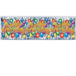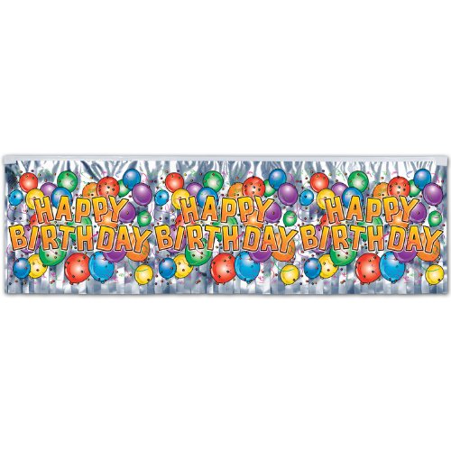 Studio : The Beistle Company Publisher : The Beistle Company Binding : Kitchen Product Description Beistle 55493 Flame Resistant Metallic Birthday Balloon Fringe Banner. This is a metallic fringed banner with a repeat of "Happy Birthday" and balloons design. It is very colorful and measures 14 Inch tall by 4 feet wide. 0