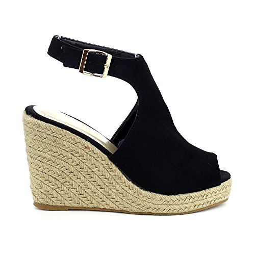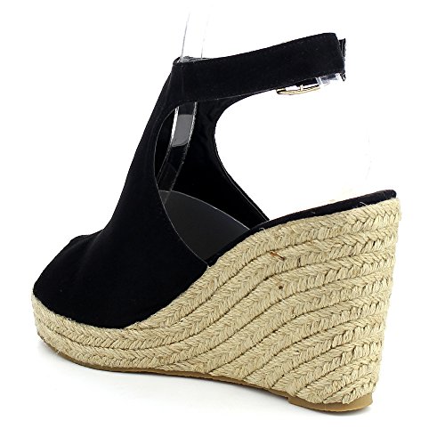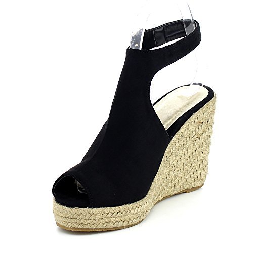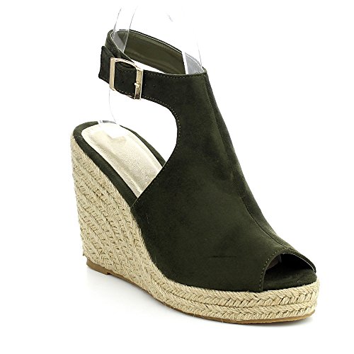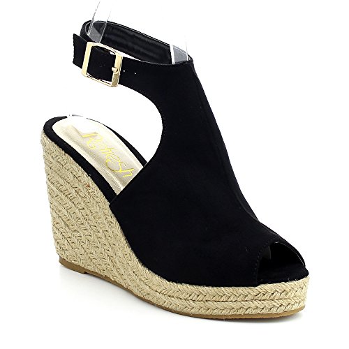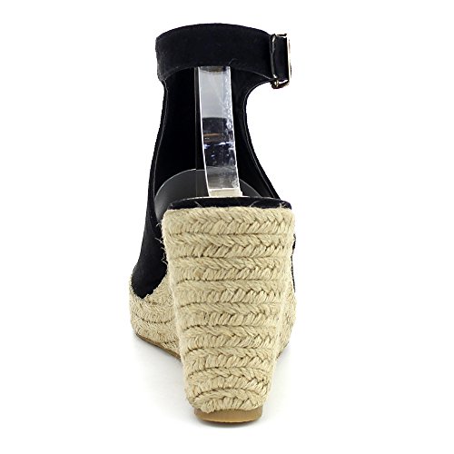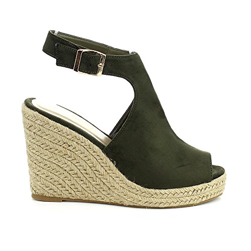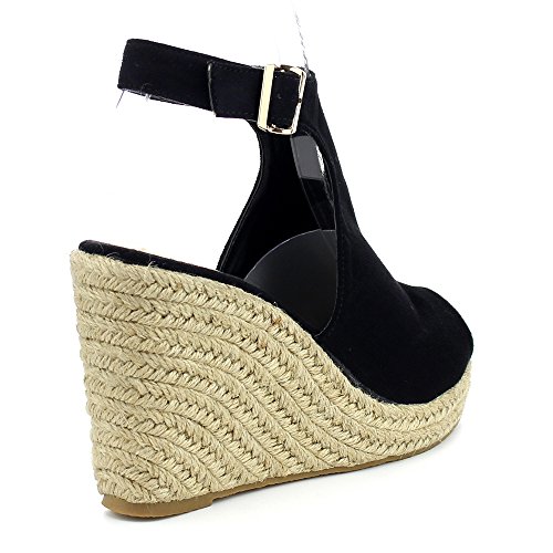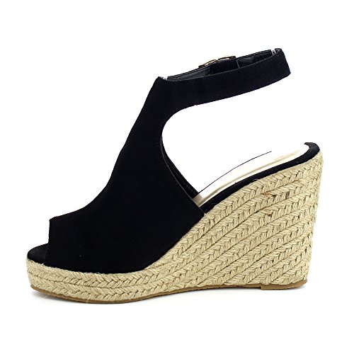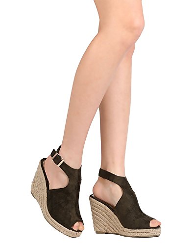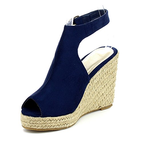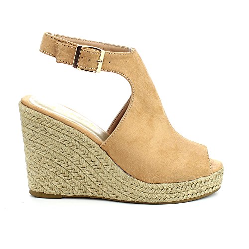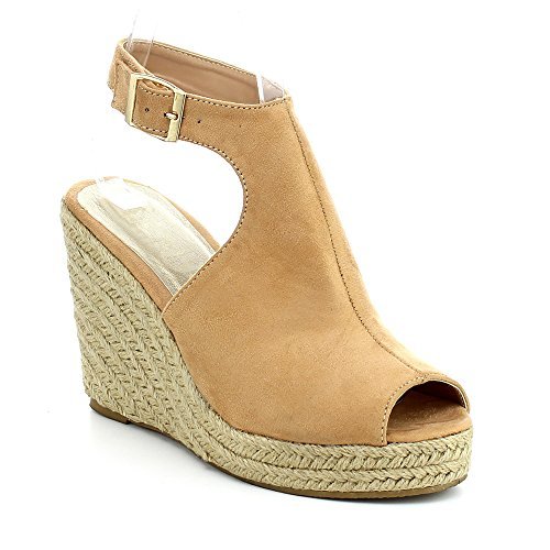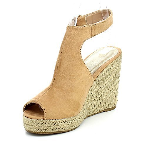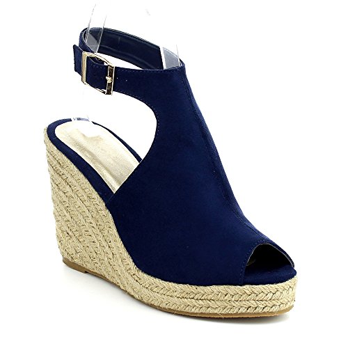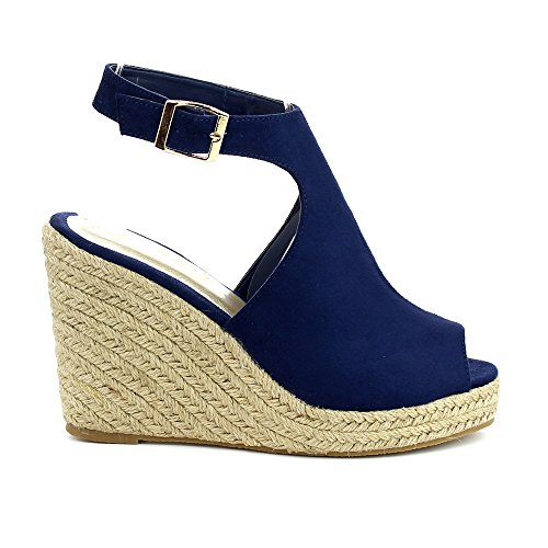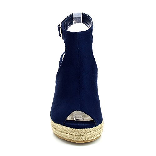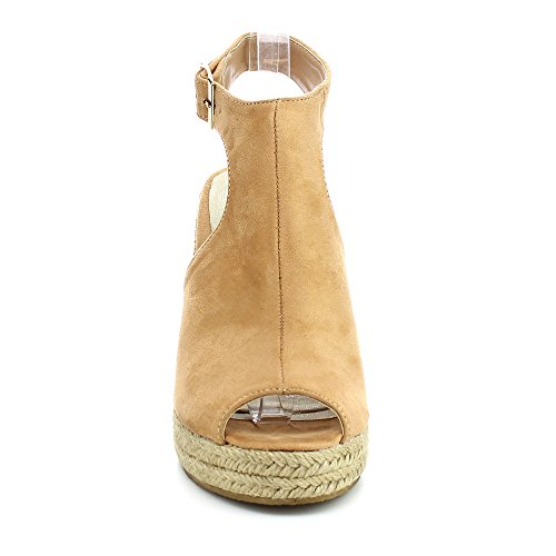 WestCoast Sandra-08 Women's Sude Fabric Peep Toe Ankle Strap Espadrille Wedge Sandals