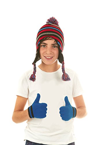 Polar Wear Boys Knit Winter Peruvian Ear Flaps Beanie Hat & Gloves Set