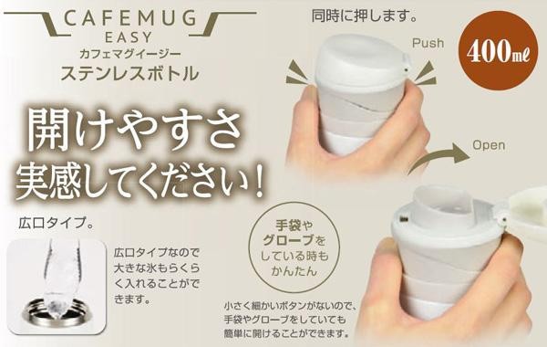 | 小さく細かいボタンがないので、手袋やグローブをしていても簡単に開けることができます。また、広口タイプなので大きな氷もらくらく入れることができます。 |