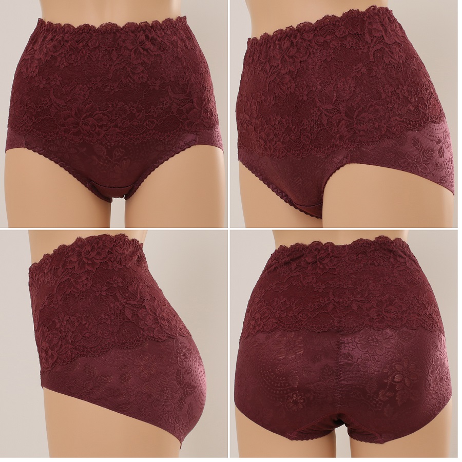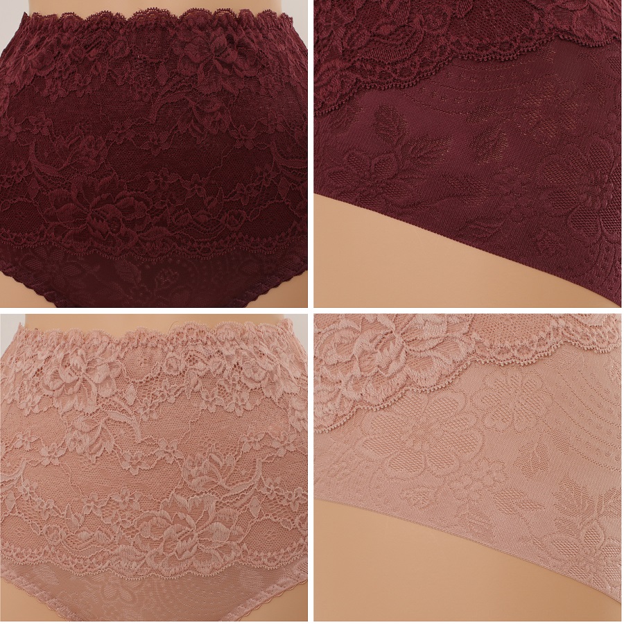 밑위 길이를 충분히 올리고 자카드 레이스를 덧데어 착용했을 때 안정감을 주고