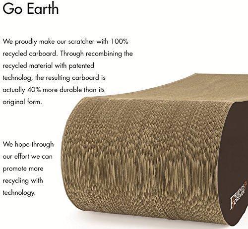 Tired of purchasing cat products that your feline loved ones get bored of, quickly??Friends Forever® cat scratcher serves more than just one purpose. Multi Purpose Scratcher Cats love it for lounging, playing, and sleeping too! Scratching is a natural cat behaviour that helps them to relieve stressplus getting the added benefit of excercize. Deter the Scratch Master Your furniture curtains will thank you too. Designed for owners looking to reclaim their homes. Finally a pet product with a stylish design that flows with your home decor. Instead of scratching your furniture, your cats will be more than happy to scratch the less expensive and better feeling cardboard. Made from 100% recycled organic cardboard . This attractive modern design will fit into any rooms decor. The exterior large scratcher measures 34" x 12" x 11", the internal small scratcher mesures. The largest cat scratcher with the most scratching surface in the market yet. Happier cat and owner guaranteed. No assembly required. All materials tested using international safety standards. ----- If you like our product, share your experience! We appreciate your feedback!