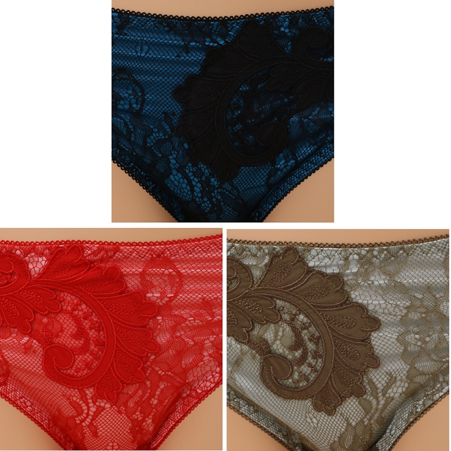 올오버 레이스와 원단 자수 모티브를 매칭하여 럭셔리한 느낌을 주는