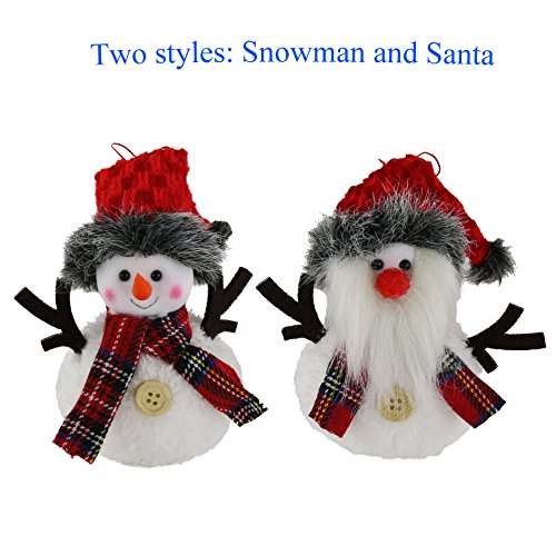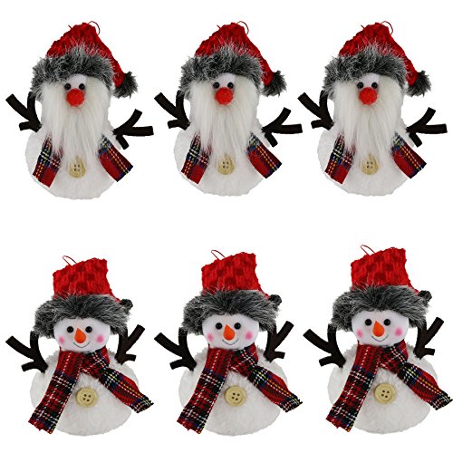 Wewill 6 Pack Plush Hanging Christmas Tree Ornament Sets Santa and snowman, 5.5inch