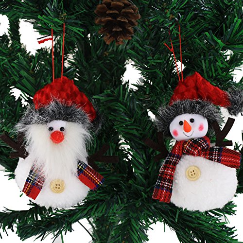 - Cute Christams elements doll ornament, creating festive Xmas atmosphere, loved by people in any age. You can also tie these snowman santa ornaments on holiday packages for an extra special Christmas gift.