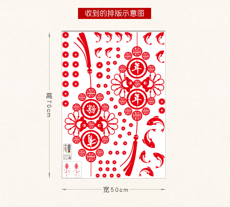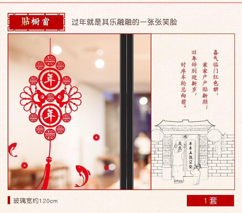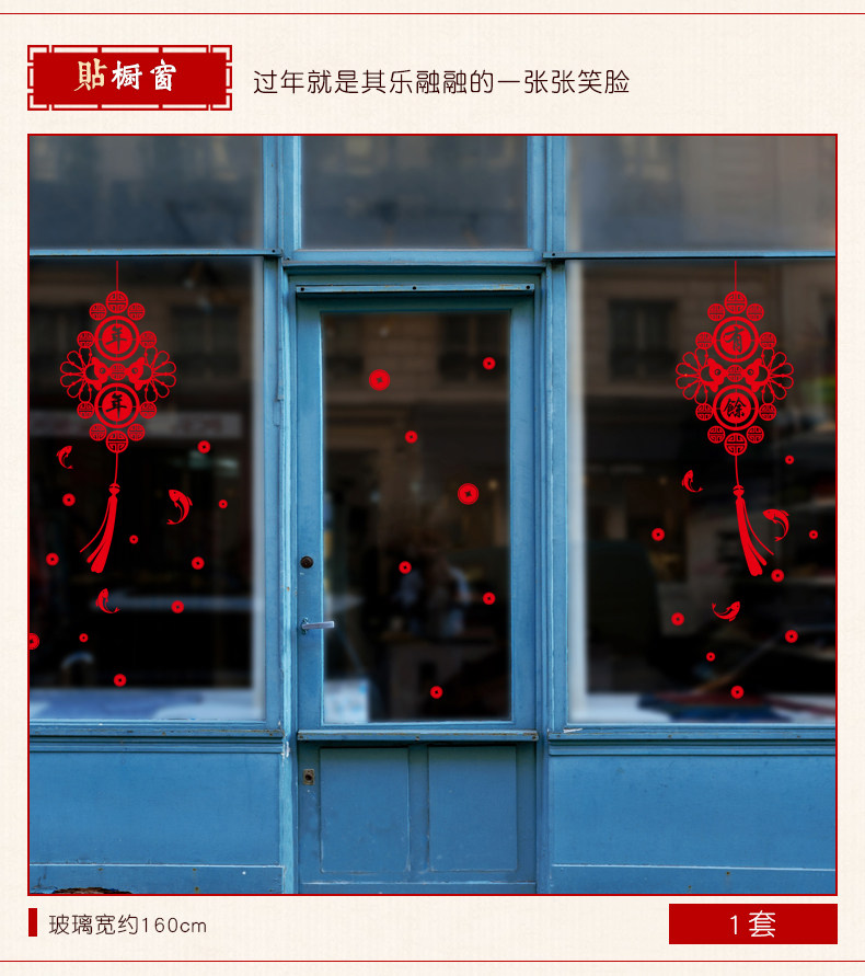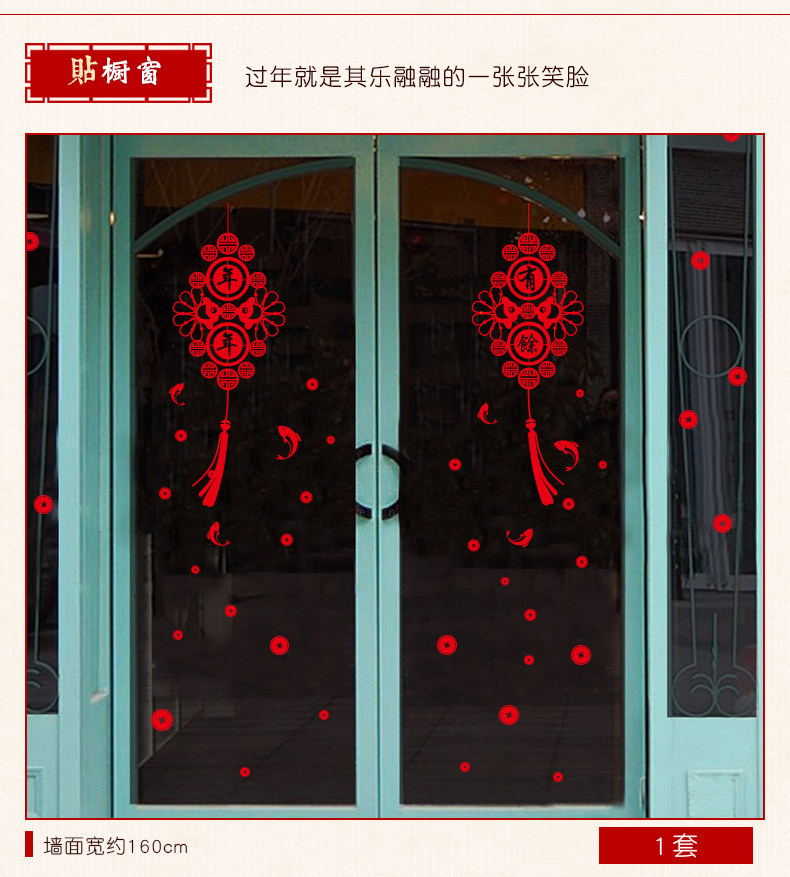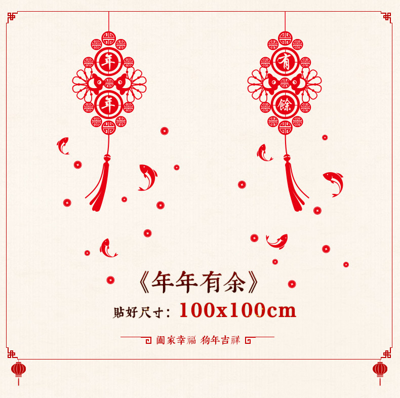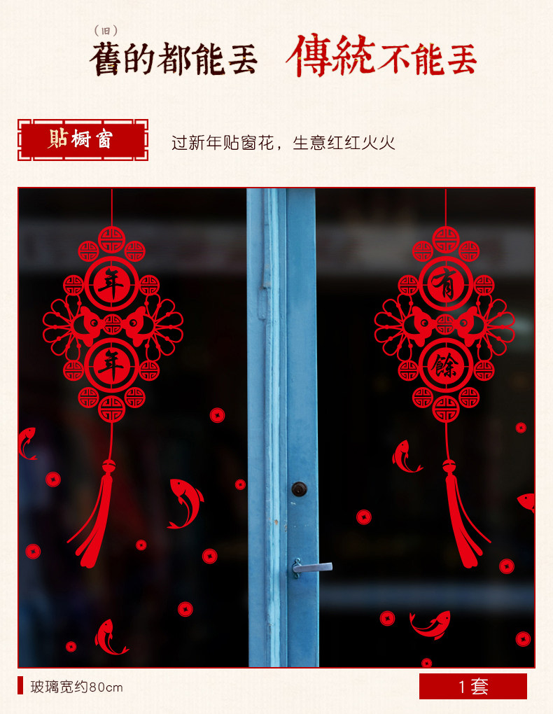 年年有余春节纸贴画新年装饰品橱窗玻璃门店铺元旦新年快乐