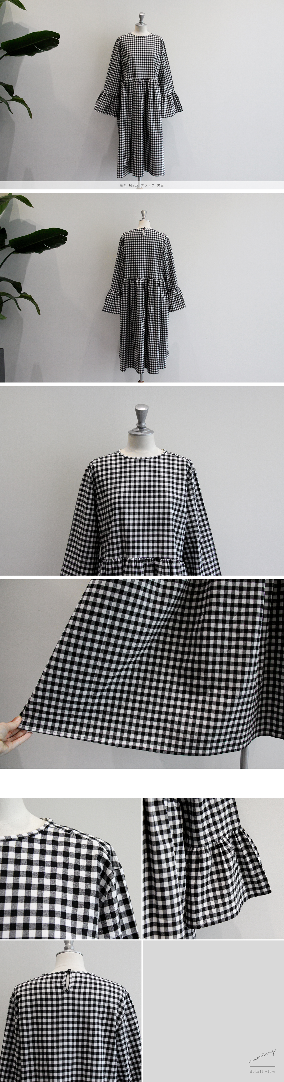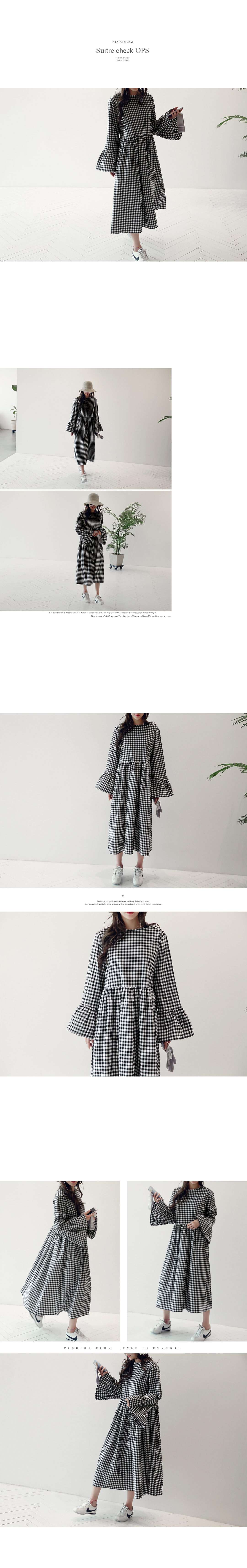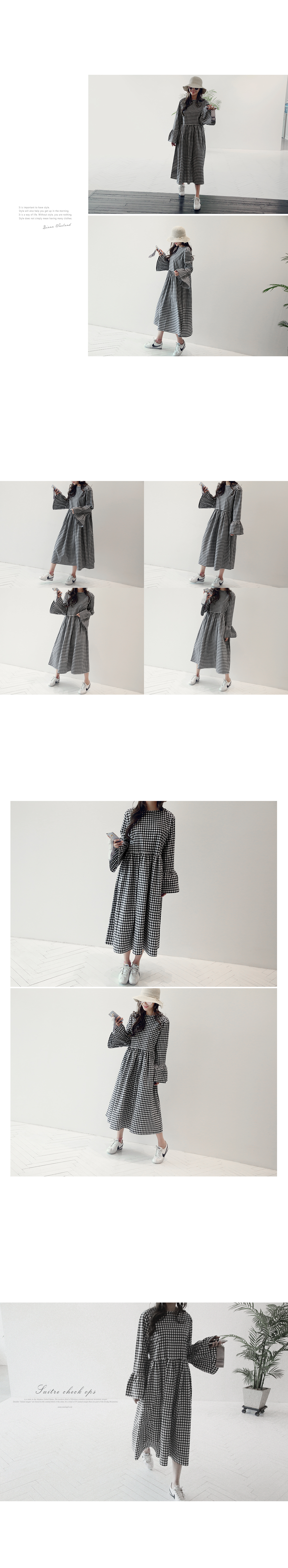체크패턴에 아방한 핏으로 발랄하고 큐트한 느낌의 원피스 소개할게요.롱한길이에 여유있는 핏이 체형커버에 좋구요, 허리 절개에서 이어진 스커트부분에 주름을 잡아주어 자연스럽게 퍼지는 스커트가 너무 사랑스러워요.슬리브는 와이드한 프릴소매로 패셔너블하면서 러블리한 디테일을 더해주었어요.패턴이 들어간 원피스라 단품으로 즐기기에 너무 좋아 화창한 봄날요 아이 하나만 입어주시면 포인트 악세사리 없이도 멋스러운 스타일링완성하실 수 있답니다.
