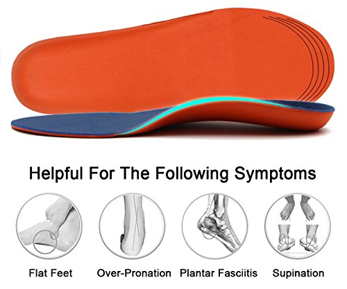 - High Arch Support: A full length pair of Orthotics Insoles provides additional arch support and comfort for whom suffering from several of foot ailments, such as flat feet and fallen arches
