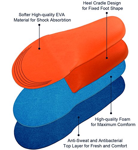 - PERFECT FLAT FEET INSOLE: Provide Arch Support, Distributing and Minimizing pressure in the foot. Perfect insoles for Flat Feet and Fallen Arches. Heel Cradle Design protect your heel during walking or running and shock absorption