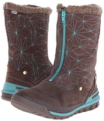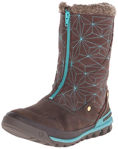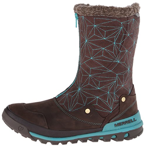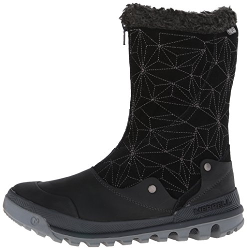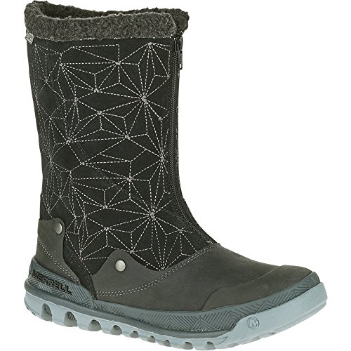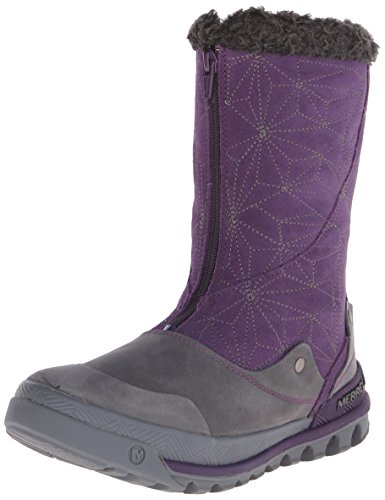 Studio : Merrell Footwear Publisher : Merrell Footwear Binding : Shoes Product Description Unleash the daredevil in you with the women's Merrell Silversun Zip Waterproof boot. Constructed with suede, nubuck leather and wool, this boot displays embossed leather detailing that enhances its look. It includes a wool collar that offers comfortable fit. With a front zipper closure, this boot provides quick on/off. An M SelectTM DRY accompanies this boot to wick away moisture and keep your foot cool. There is a ConductorTM fleece lining and 400g M SelectTM WARM lightweight, low bulk insulation that offer enhanced warmth during the freezing ambience. Its Aegis® Antimicrobial solution reduces foul odor and gives you a healthier walking experience. This boot also comes with an EVA removable footbed that comforts your foot with each step. Moreover it has an EVA midsole that shields you from harmful shocks and lends you the needed stability. For a finishing touch to this boot, it has a reliable outsole that lets you maintain a confident stride. Pick the women's Merrell Silversun Zip Waterproof boot for tis reliable performance and unsurpassed comfort. 0