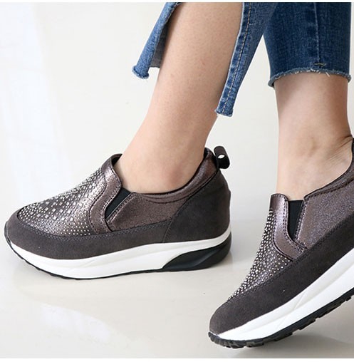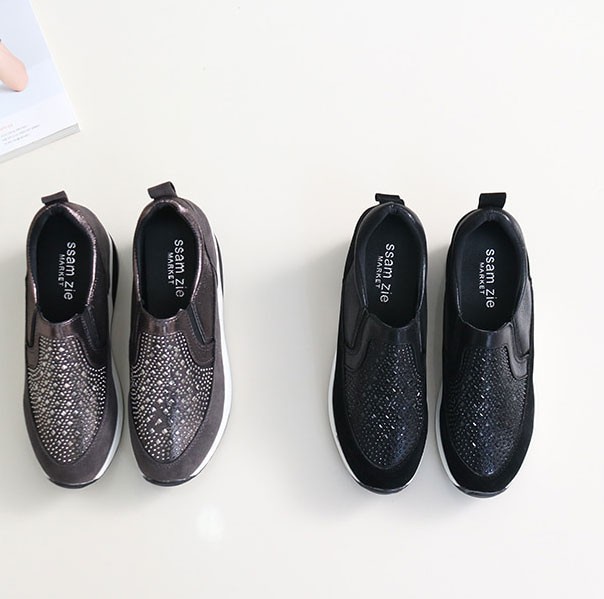 商品名:スニーカー レディース スリッポン キラキラ 厚底 2017 秋 冬 ファッション 靴 婦人靴