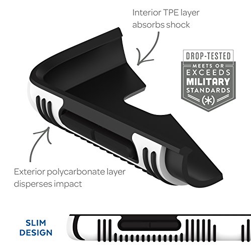 -. Feature : Military-Grade drop Tested onto a hard, unrelenting Surface with Phone retaining full functionality / Rubber stripes provide a no-slip grip great for snapping pics. / Patented design provides two layers of protection in a single-piece construction that's easy to put on and take off. / Hard outer shell on these covers guards against impact and adds strength and durability. / Raised bezel protects screen from impact and adds grip so your Phone can lie face down on tables or dashboards without sliding.