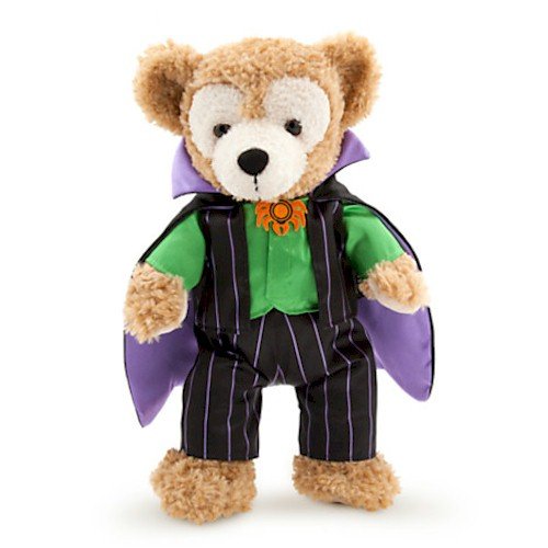 -. Binding : Toy -. Brand : Disney -. EAN : 0719826897960 -. Feature : Costume includes shirt with cape and pants, Satin shirt with spider appliqué and self-stick fabric closure / Attached velour cape with satin lining, Satin pants with self-stick fabric closure / Mouse logo on back / Fits 17'' Duffy the Disney Bear Plush, not included / Polyester -. Label : Disney -. Manufacturer : Disney -. MPN : 7512055890010P -. PackageQuantity : 1 -. PartNumber : 7512055890010P -. ProductGroup : Toy -. ProductTypeName : TOYS_AND_GAMES -. Publisher : Disney -. Size : one size -. Studio : Disney -. Title : Duffy the Disney Bear Vampire Costume - 17'' -. UPC : 719826897960