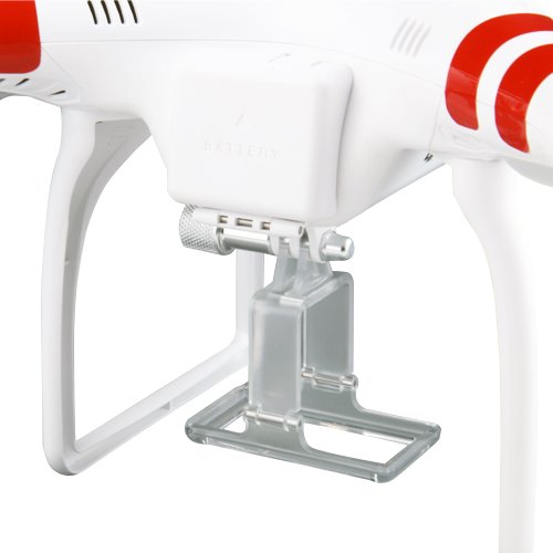 The Phantom includes a GoPro mounting case from DJI and holes for the standard GoPro housing (shown at left with the GoPro Hero3+, not included). Tip: use the GoPro's onboard video rotation (flip) setting to adjust for the upside down mounting position.