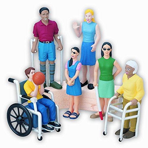 These figures will help foster positive awareness and inclusive attitude towards individuals with physical challenges. Made of solid vinyl, they add inspiration and social awareness to block play. Set of 6 figures. Tallest is 5" H. Ages 3 yrs. +.Feature