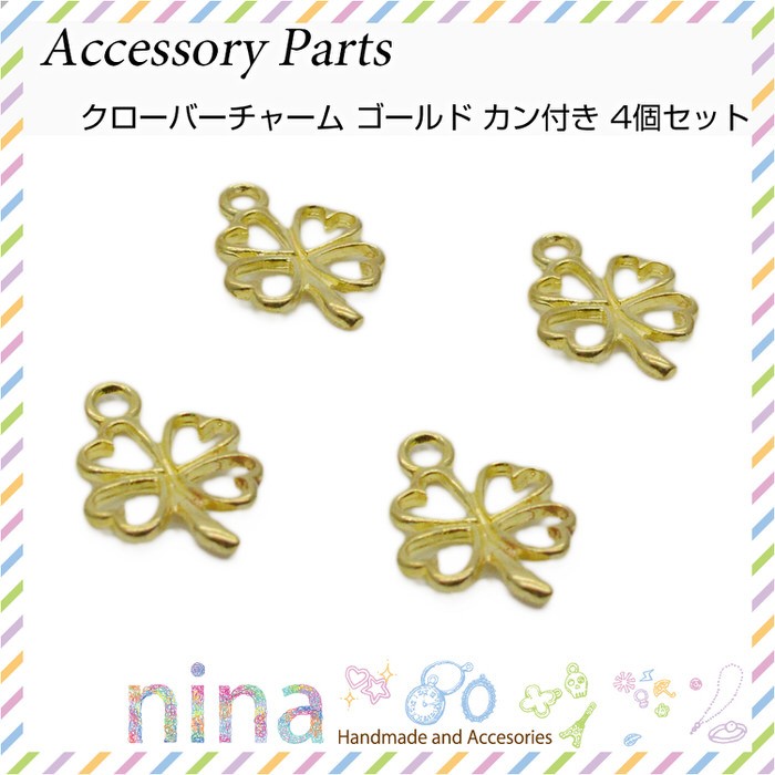 ■商品名:クローバーチャーム ゴールド カン付き 4個セット