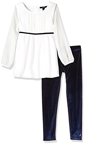 Nautica Little Girls' Two Piece Long Sleeve Legging Sets, Medium Indigo, 6