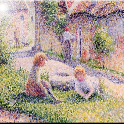 Rikki Knight RK-8intilec-3043 8" X 8" Georges-Pierre Seurat Art Children on A Farm Design Ceramic Art Tile
