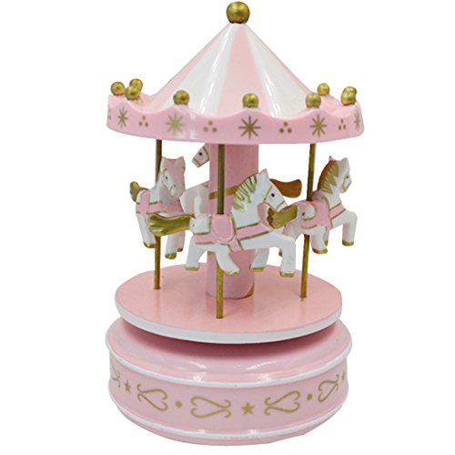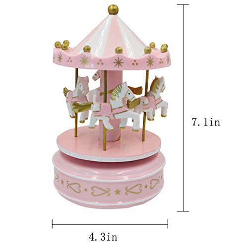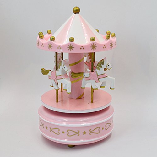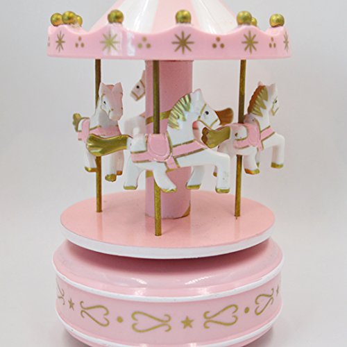 Kennedy Fantasy Wooden Carousel Rotating Music Box Classic Music Box For Children Girls Christmas Birthday Wedding Gift Toy (Pink)