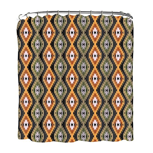Indecor Home FSCRH-Aztec-OR Fabric Aztec Shower Curtain and Roller Hook Set