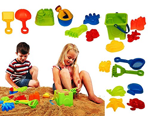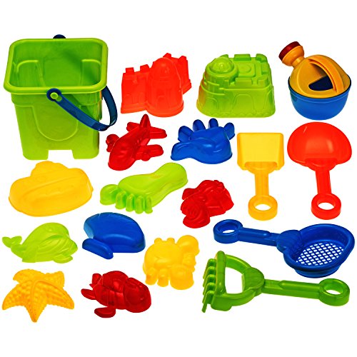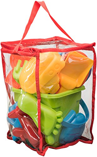 Studio : Dragon Too Publisher : Dragon Too Binding : Toy Product Description Set Includes 18 vibrant beach toys: 1 bucket, 1 watering can, 1 rake, 2 shovels, 1 sifter, 12 assorted sea molds including starfish, airplane, finger and toe molds. Blocks are stored in a clear plastic reusable zippered bag for quick and easy cleanup. Great Beach Toy for the entire family enjoying a day at the beach. Promotes hand-eye coordination while encouraging imaginative and educational play. All Dragon Too products comply with all USA toy safety standards and are 100% safe for children. 0