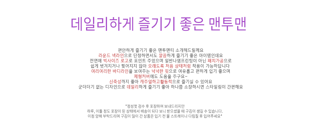 .같은 사이즈라도 체형에 따라 핏감이 조금씩 다를 수 있습니다.