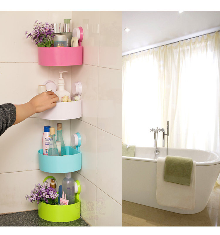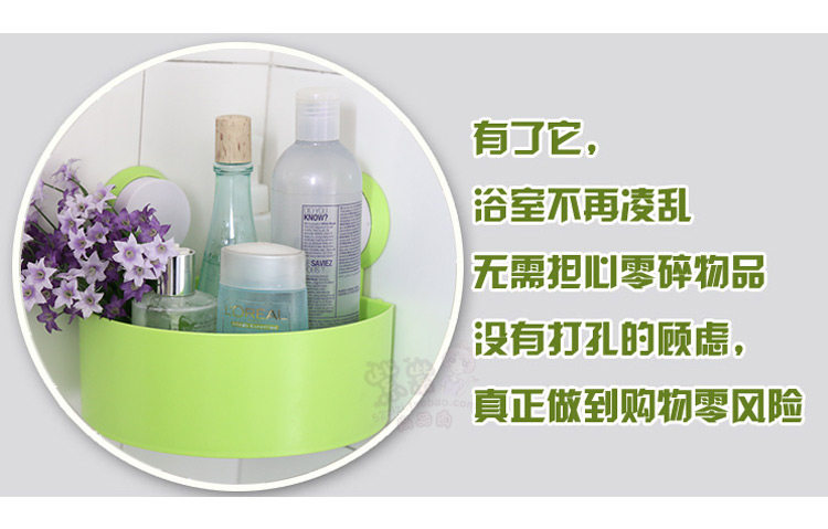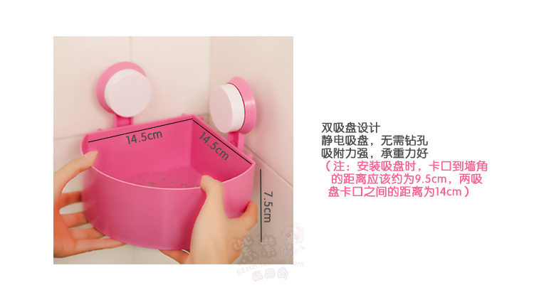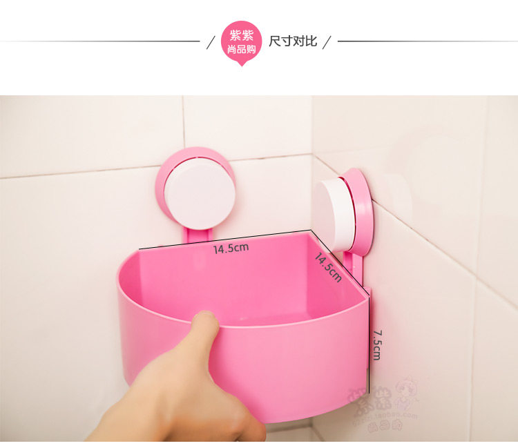 Double sucker design, stick too firmly, the loading capacity is good, toiletries, cosmetics and other small debris can be put, very suitable for home use in the corner!