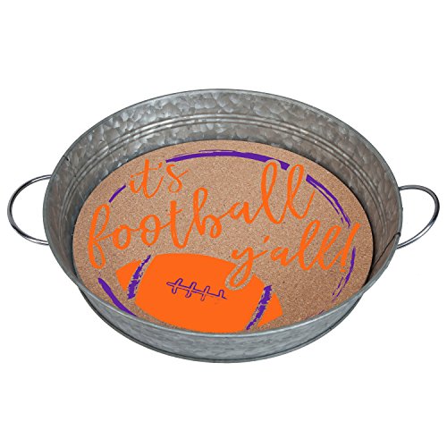 - Galvanized metal with cork insert embellished with 'it's Football y'all'