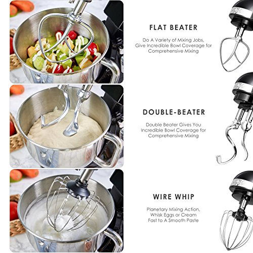 •✓ Double Dough Hooks: The unique design simulates kneading by hand, and planetary-style mixer with double dough hook kneads yeast dough easily and quickly.