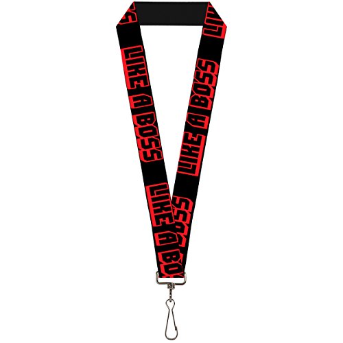 -. Binding : Apparel -. Brand : Buckle Down -. Department : unisex-adult -. Feature : This lanyard is made out of stretchy nylon, and has a stainless steel clip to easily detach your keys / Show off your favorite style / The lanyard is 1.0 inches wide, and a standard length -. Label : Buckle-Down -. Manufacturer : Buckle-Down -. MPN : LY-1.0-W31246 -. NumberOfItems : 1 -. PackageQuantity : 1 -. PartNumber : LY-1.0-W31246 -. ProductGroup : Apparel -. ProductTypeName : ACCESSORY -. Publisher : Buckle-Down -. Studio : Buckle-Down -. Title : Buckle-Down Lanyard - 1.0" - Like A Boss Black/red Accessory