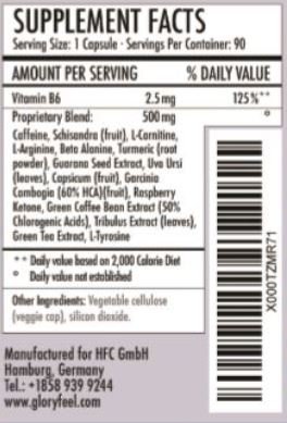 The body needs vitamin B6 for more than 100 enzyme reactions involved in metabolism. Vitamin B6 is also involved in immune functionOther valuable Ingredients in our premium blend: Caffeine Anhydrous; Schisandra (fruit); L-Arginine; Beta Alanine; Guarana Seed Extract; Uva Ursi (leaves); Capsicum (fruit); Tribulus Extract(leaves); L-Tyrosine