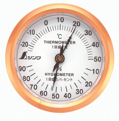 -. Feature : メーカー型番: 72669 / サイズ: 直径71×21mm / 質量: 30g / 材質: スチロール樹脂、ABS樹脂、アルミ / 精度: 温度計:-21度以下はプラスマイナス4度、-20~40度はプラスマイナス2度、41度以上はプラスマイナス4度、湿度計:34%以下はプラスマイナス10%、35~75%はプラスマイナス5%、76%以上はプラスマイナス10% / 測定範囲: 温度計:-24度~50度、湿度計:10~90% / 目盛: 温度計:2度、湿度計:5%