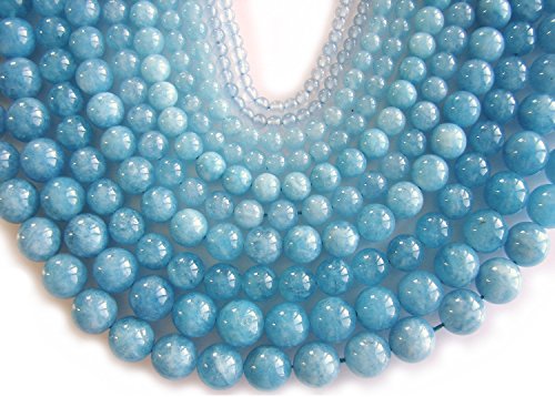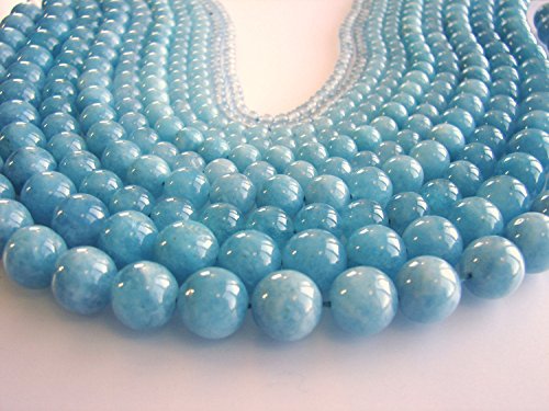 Aquamarine Beads Strand, Round Beads, Natural Aquamarine Gemstone for Jewelry Making by BEEZZY BEEDZ (8mm, Aquamarine Light Blue)