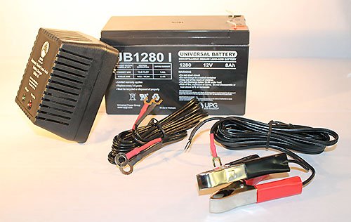 -. Feature : UB1280 12V 8AH / SLA BATTERY / INCLUDE 12V CHARGER WITH ALLIGATOR CLIPS / GREAT FOR TROLLING MOTORS AND INFLATORS / USED FOR WHEELCHAIRS, SCOOTERS, TOYS, AND ALARMS