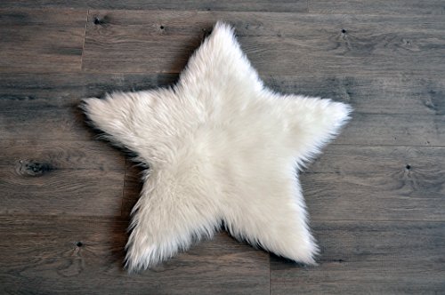 Machine Washable Faux Sheepskin White Star Rug 2' x 2' - Soft and silky - Perfect for baby's room, nursery, playroom (Star Small White)